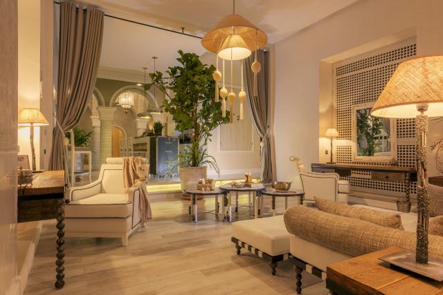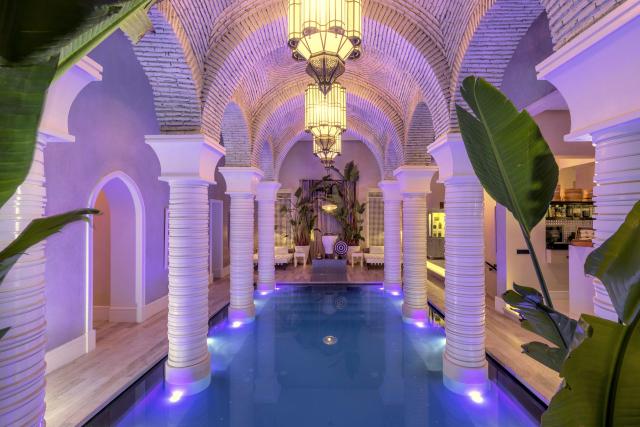 Sous les arcades du SPA de l’Hôtel The Source, plusieurs salles de massage et de repos, un bassin somptueux et des moucharabiehs s’étendent sur 400 m2.